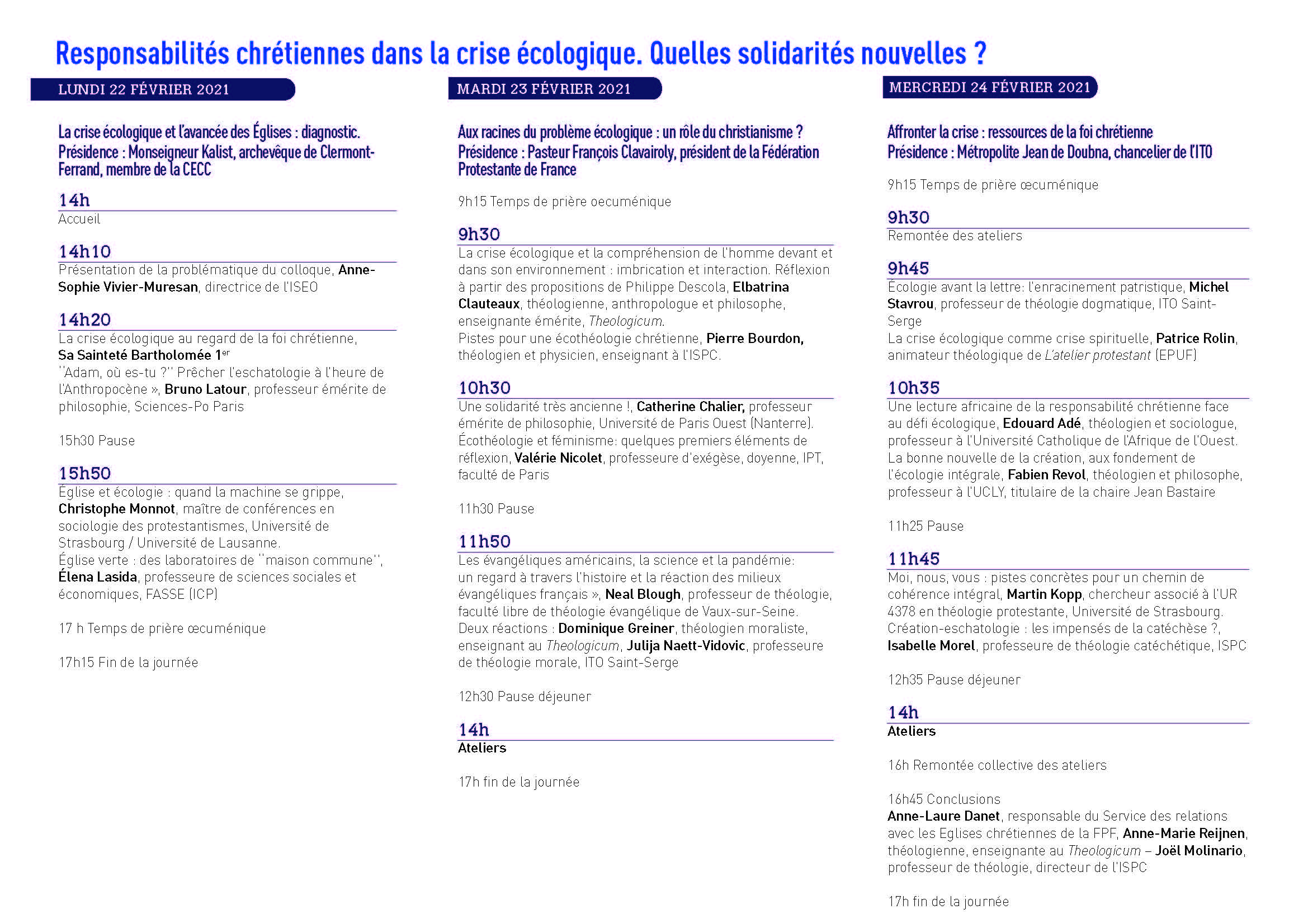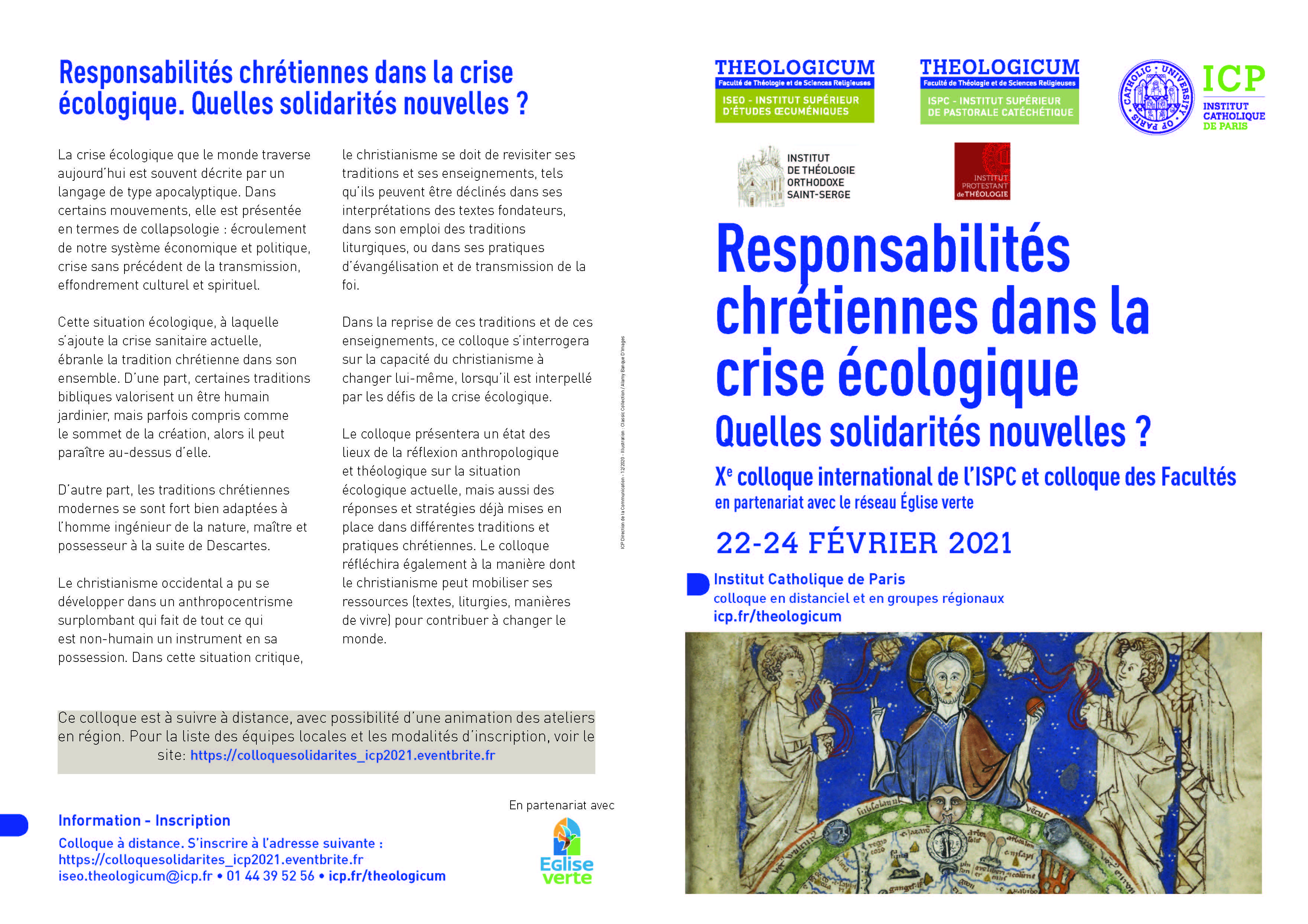 Xe colloque international, organisé par L'institut Supérieur d'Etudes Oecuméniques, L'Institut Supérieur de Pastorale Catéchétique, l'Institut Protestant de théologie et l'Institut de Théologie Orthodoxe Saint-Serge. En partenariat avec le réseau Église verte
