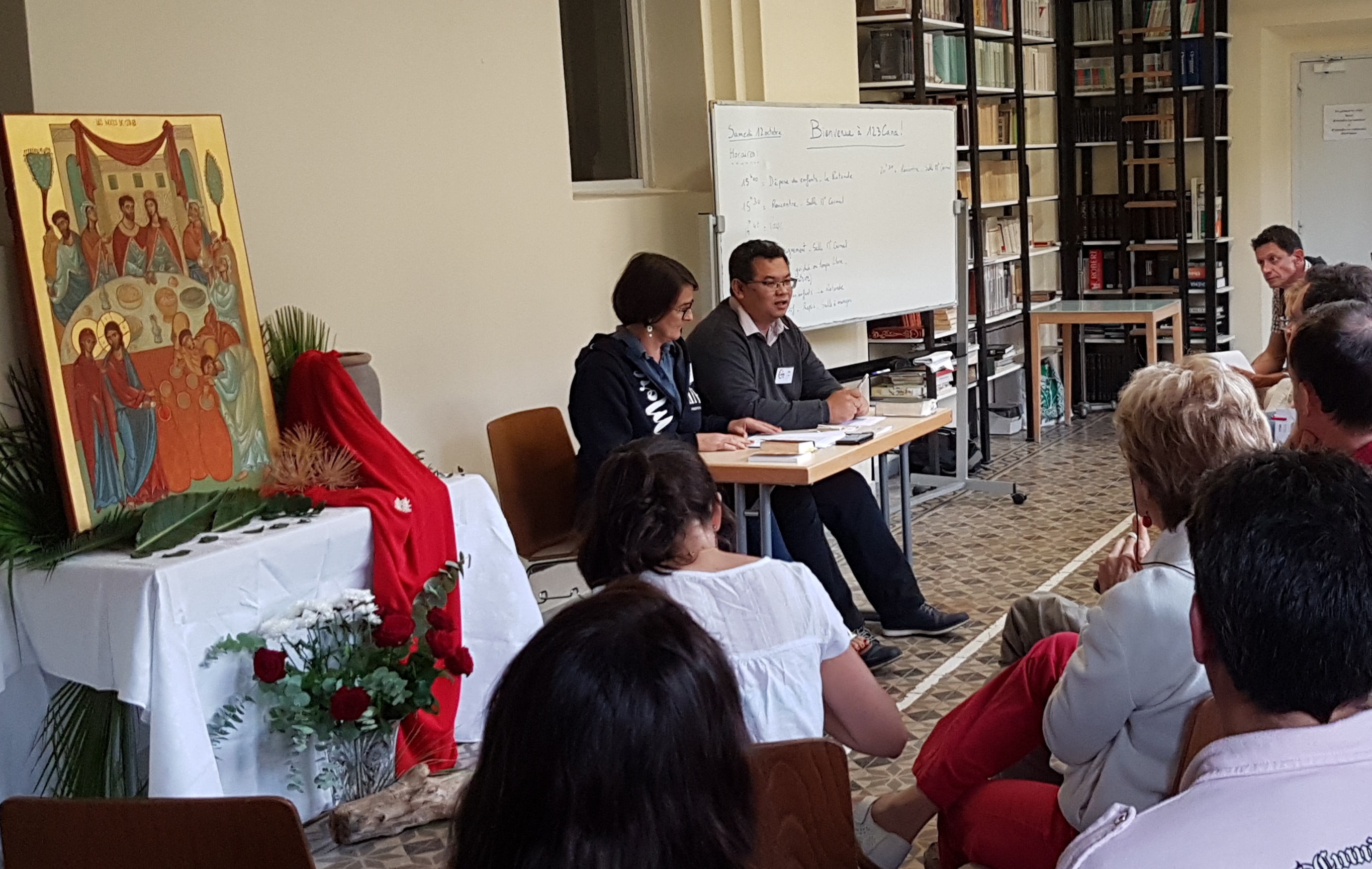Sœur Marie-Gwenaëlle nous trouve toutes les solutions, la salle St Irénée pour ceci, la salle St Elie pour cela, il y a aussi la salle St Brocart et la salle St Thomas, la salle St Mont Carmel… enfin non, salle du Mont Carmel c’est déjà pas mal...